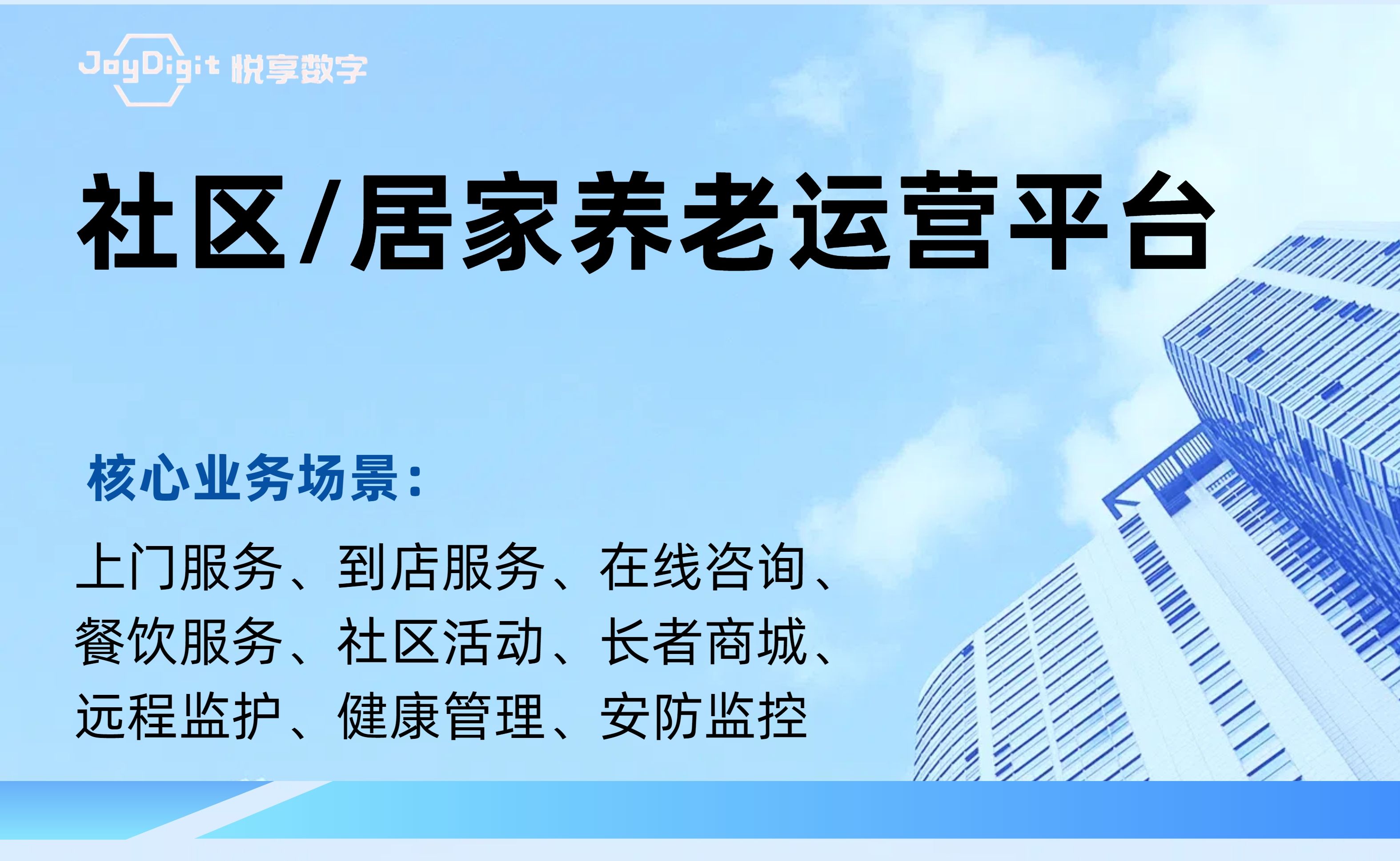 北京悅享數字科技有限公司(JoyDigit?,簡稱悅享數字?)作為養(yǎng)老行業(yè)數字化轉型的引領者,以“數字驅動健康?,智慧賦能養(yǎng)老?”為愿景,以iSpeed作為養(yǎng)老行業(yè)數字化轉型的標準,通過融合大數據、人工智能、物聯網、區(qū)塊鏈和移動互聯等創(chuàng)新技術,打造了領先的數字化養(yǎng)老解決方案-悅享養(yǎng)老數字化平臺(JoyDigit NexSight Platform),端到端覆蓋了數字化渠道與銷售、業(yè)務流程標準化與智...